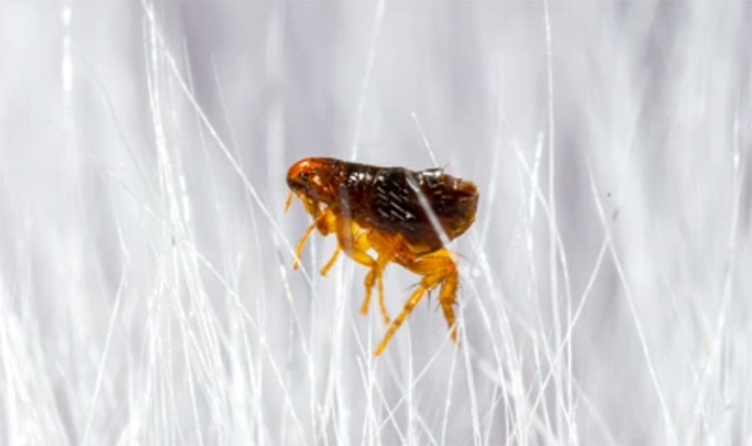 This flea is commonly found on poultry and other birds but can also affect domestic animals like dogs and cats. It has a more localized impact, often attaching itself to the skin around the ears, eyes, or nose of its host.
